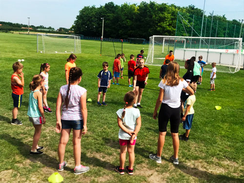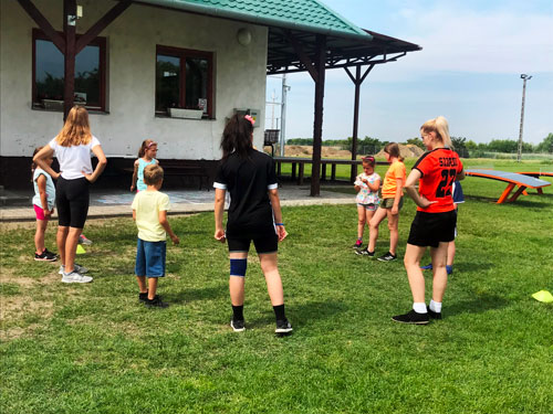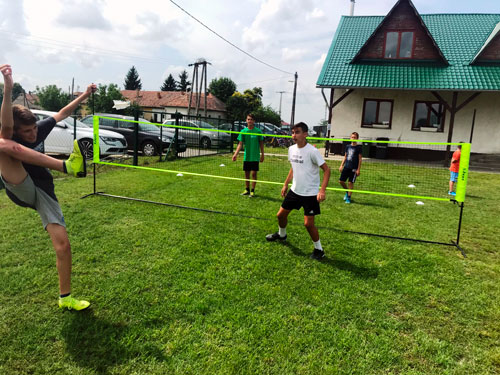 A koronavírusos idõszak sajnos csapatunkat is pihenésre kényszerítette. Március óta szüneteltek az edzések. Lassan tudjuk csak újra beindítani az edzéseket, ezért kifejezetten nagy öröm volt számunkra a Tápiószõlõsi Focitábor meghívása. A Tápiószõlõs Községi Sportegyesület által szervezet ötnapos tábor egyik délelõtti programsorozatában kaptunk helyet. Nagy Máté sportágelméleti ismertetõje után, Árvai Milán ismertette az érintések és a rúgások szabályait. Mezei Gábor és Szigedi Barbara pedig bemutatták az egyéni, a páros és a csapat felállásokat és játékmeneteket. A hátralévõ idõ a gyerekeké volt. A játékosokkal négy kiscsoportot alkotva, mindenki elsajátította a rúgások és a levételek alaptechnikáját. A csoportos foglalkozások után hálónál próbálhatták ki magukat a gyerekek. Két pályán 20-30 gyermek játszott folyamatosan. A lábtoll-labdázós programot egy indián játékkal zártuk. Hatalmas élmény volt számunkra. Köszönjük a meghívást! Reméljük hamarosan egy újabb Tápió-vidéki település csatlakozik a lábtoll-labdázó közösséghez!