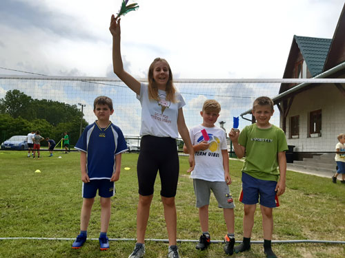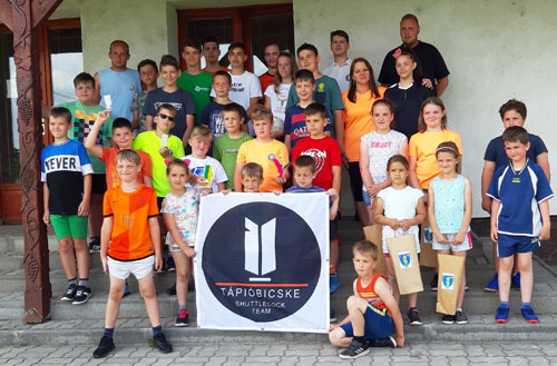 A táborozók és a tápióbicskei lábtoll-labdázók a sikeres bemutató után