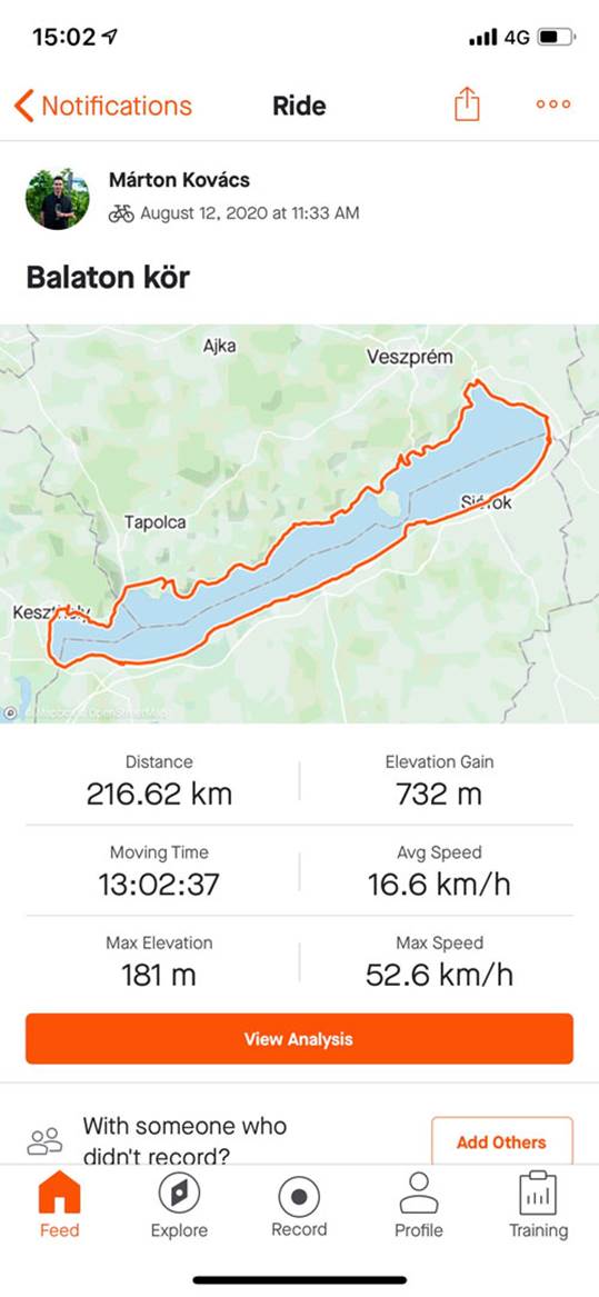 Balatonfüredtõl Siófokig tartott. A három nap alatt 216 kilométert