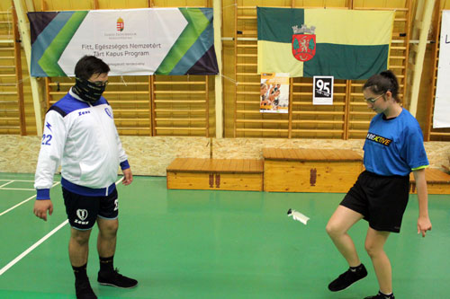 programban a lábtoll-labdázás.