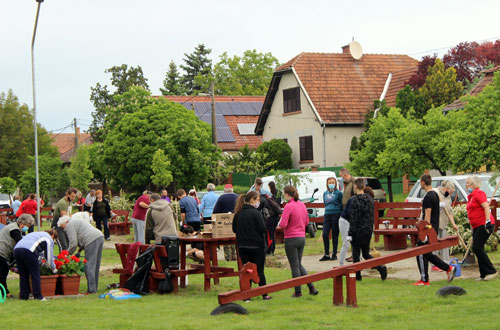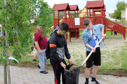 Fiatalok és idõsek közösen ástak, kapáltak, gereblyéztek, fát és virágot