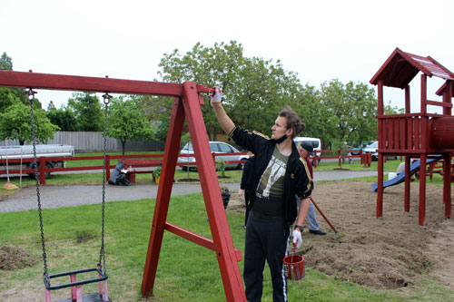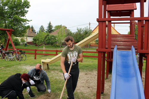 ültettek, kerítést, hintákat és fa játékokat festettek. A közösségi munkában