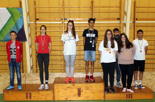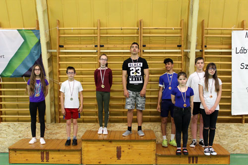 évfolyambajnokság 1-4. helyezettjei az összevont 5-6. osztályos bajnokságban