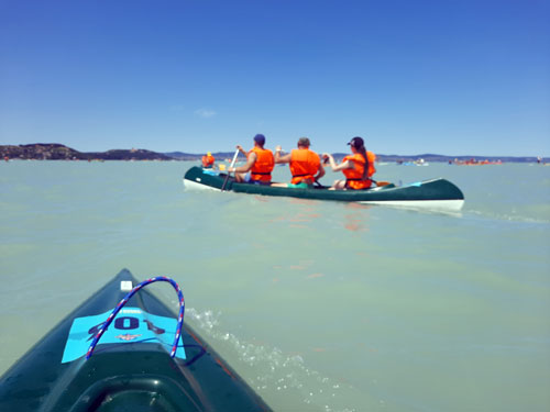 Lábtoll-labdázók a Balaton-átevezésen
