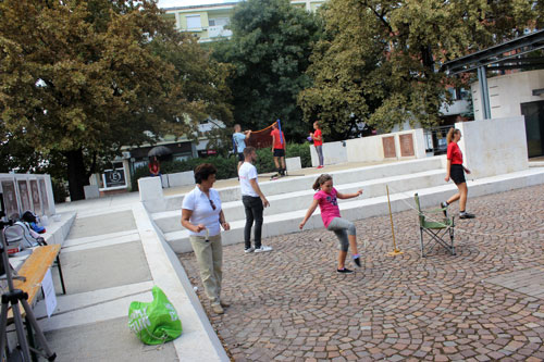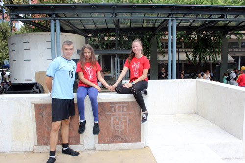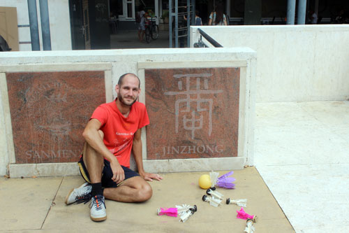 testvérvárosa, Jinzhong táblájánál. A lábtoll-labda, kínai neve, a jianzi is a