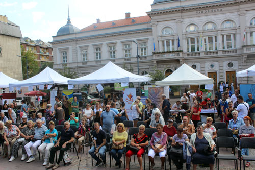 érdeklõdõkkel a Kossuth téri szabadtéri színpadon.