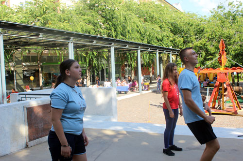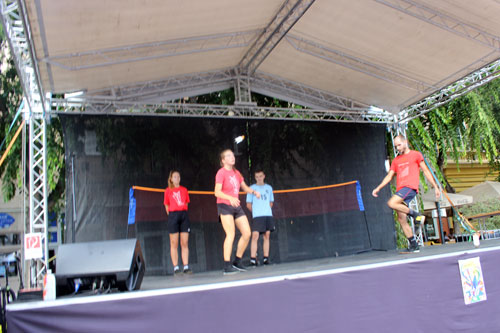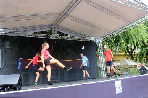 Lábtoll-labdázás a szabadtéri színpadon