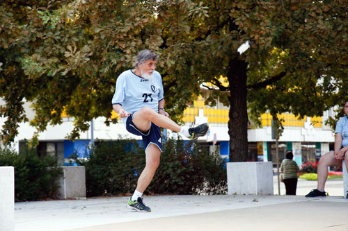 beszéde után lábtoll-labdázott földijeivel, Bali Istvánnal, aki a népi