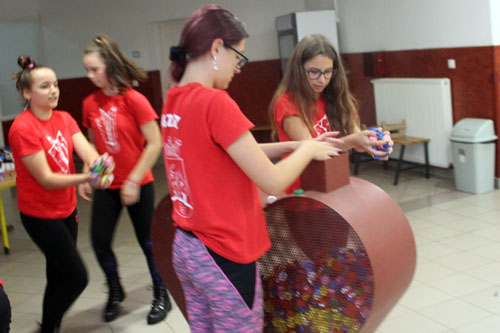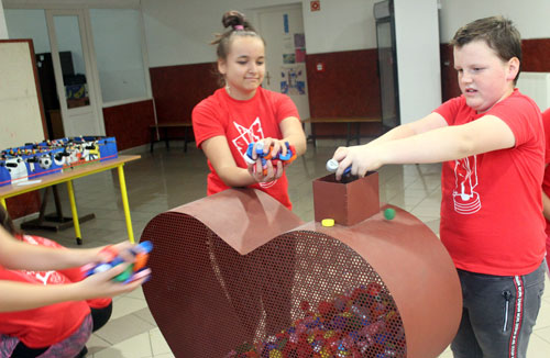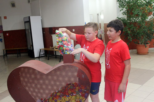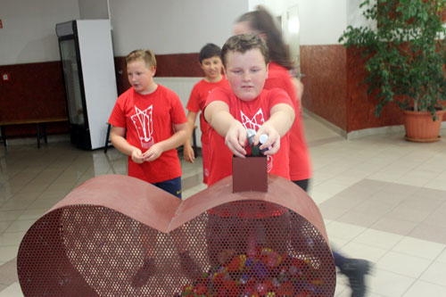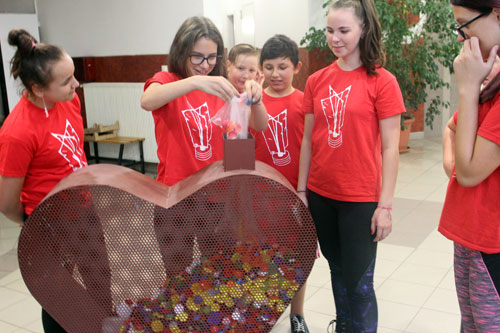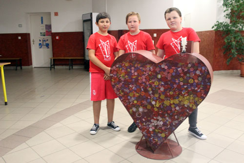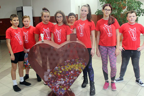 Vörösmarty Mihály Általános Iskola aulájában található kupakgyûjtõ szívbe