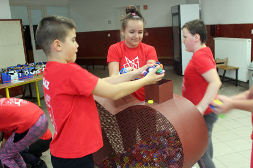 dobálták, amely szinte teljesen megtelt az általuk gyûjtött kupakokkal. A
