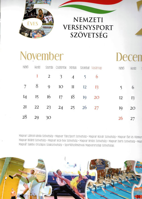 ajándékocsomagban lévõ 2022-es naptárban minden NVESZ sportág szerepel. A