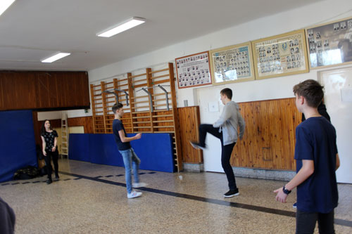 Anna testnevelõ meghívására egy olyan iskolában lábtoll-labdáztunk, amelynek