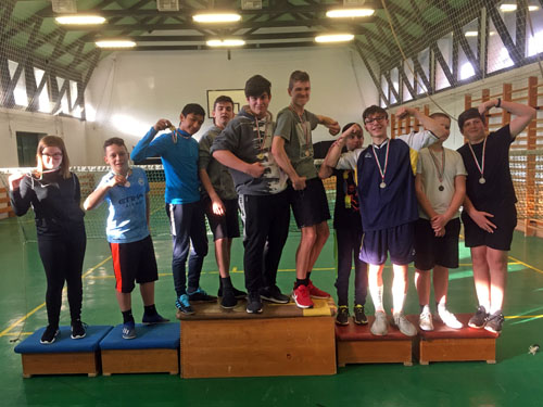Február utolsó hetében iskolánk 7-8. osztályos tanulói osztálybajnokságon szerepeltek testnevelés órákon. Csapatban és egyéniben mérték össze tudásukat, és a legjobbak az iskolai versenyen bizonyíthattak. Az azonos tudással rendelkezõk nagyon fordulatos mérkõzéseket játszottak egymással. A továbbjutók - osztályonként és nemenként az elsõ csapat, egyéniben az elsõ négy helyezett – nagy lelkesedéssel vágtak bele az iskolai küzdelmekbe, bízva a megyeire való továbbjutásban. Ennek idõpontja március 28, a helyszín pedig Cserszegtomaj. Az osztálybajnokságok a teljes osztályok részvételével zajlottak. 7.a 22 fõ, 7.b és a 8. osztály 19-19 fõvel indult a versenyen. Az iskolai döntõben 3 fiú és 4 leány csapat versengett. Az egyéni versenyeknek 12 fõs volt a mezõnye.