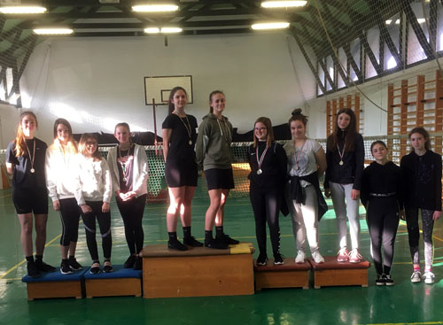Leány csapat eredményhirdetés: 2. 7.a, 1. 8. osztály, 3. 7.b, 4. 7.b