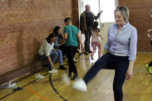 lelkes oroszlányi gyerekkel és tanáraikkal. A közös játék közben az is