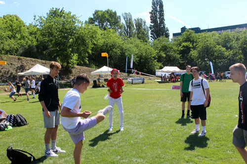 Az újszásziak sok érdeklõdõvel lábtoll-labdáztak, szepatakáztak és