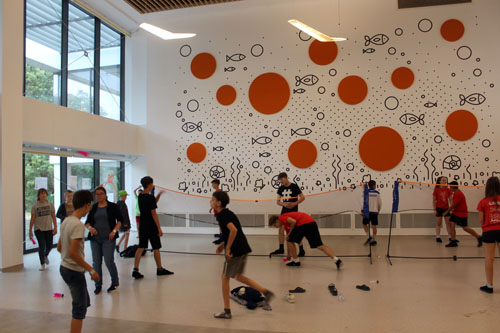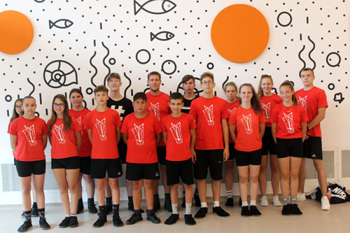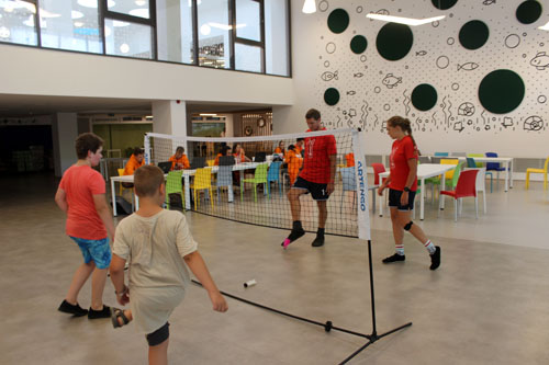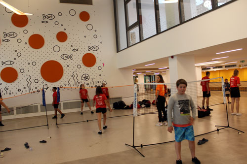 Fehérben a vízilabdázó fiúk, pirosban a lábtoll-labdázó
