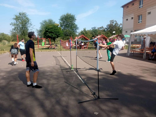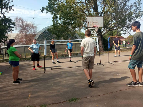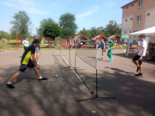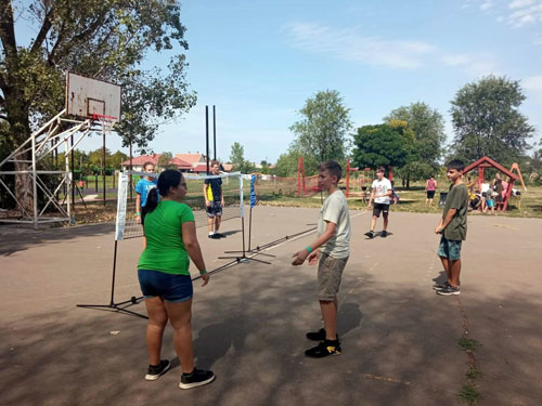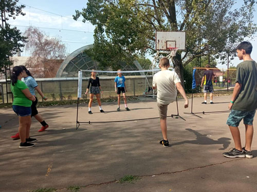 Beatrix, Skultéti Zsombor, Steczina Nikol és Tóth Ákos lábtoll-labdázott az