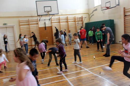 és passzolgatással kipróbálhatták a lábtoll-labdázást. A játék során segítséget