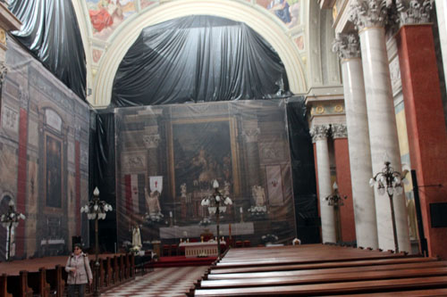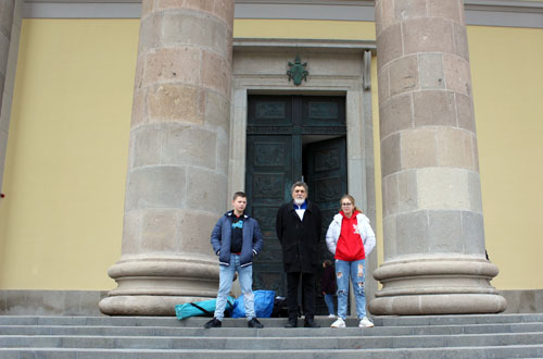 Dániel Patrik, Fehér János és Dániel Petra a bazilika elõtt