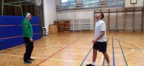 zsonglõrködése után jót lábtoll-labdázott testnevelõ tanárával és osztályával.