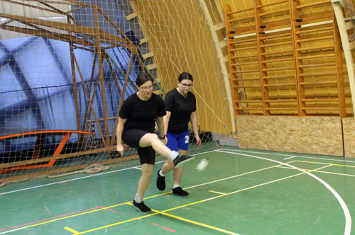 lábtoll-labdázás. Mindenki szabadon alakíthatott csapatot. Tíz csapat