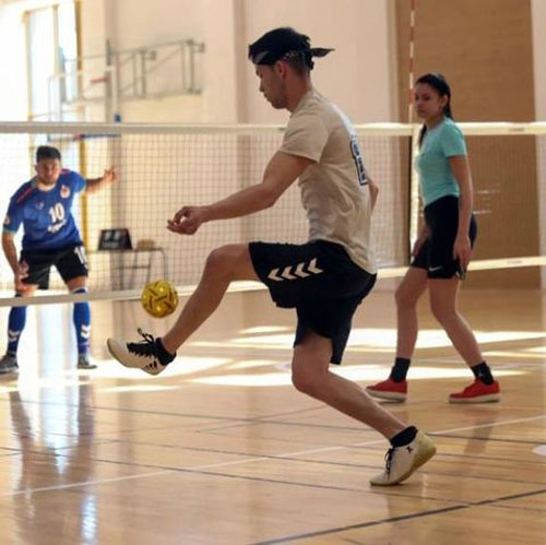 csapat fõ sportága a footbag, amely talán jobban hasonlít a lábtoll-labdázásra,