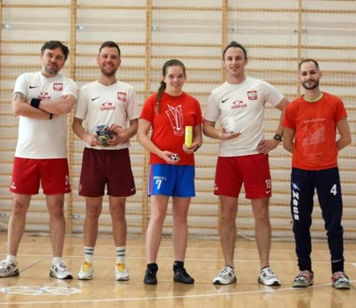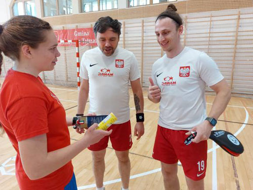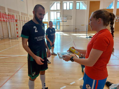 Mind a szerb, mind a lengyel csapatnak ajándékoztunk egy-egy lábtoll-labdát,