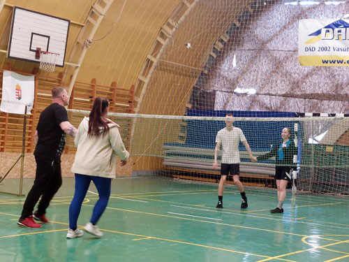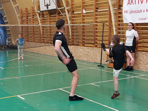 Április 15-én családi lábtoll-labda versenyt rendeztünk Újszászon.