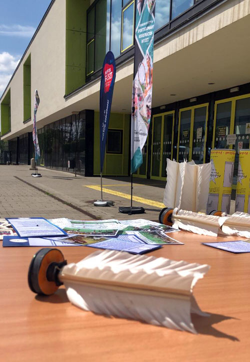 ötletesen felállított lábtollas részleg a DESOK csarnok bejárata mellett nagyon