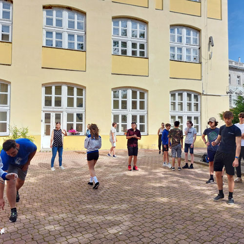 foglalkozást tartottak Szolnokon a Varga Katalin Gimnázium iskolaudvarán.