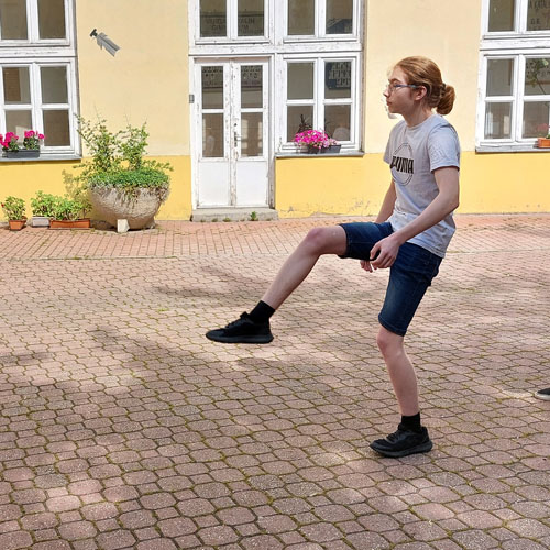 és a volt vargás diák, Farkas Lilla kíséretében lábtoll-labda bemutatót és