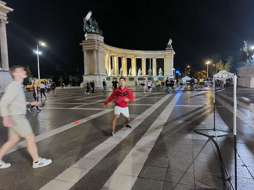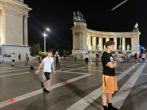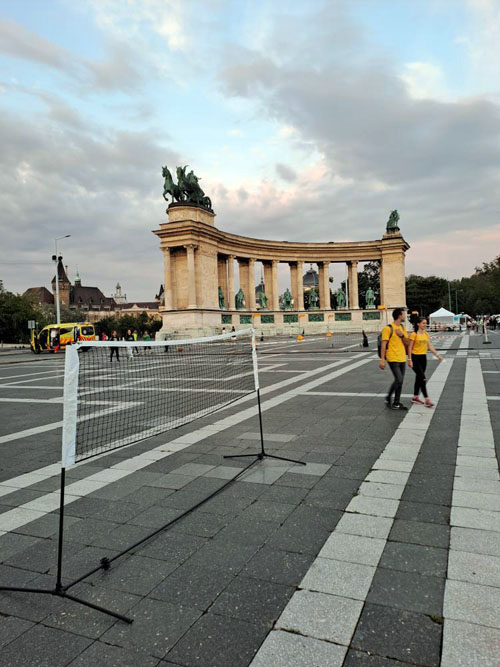 illetve Hõsök terére kilátogató sportolni vágyó lakosokat. A lábtoll-labdázást