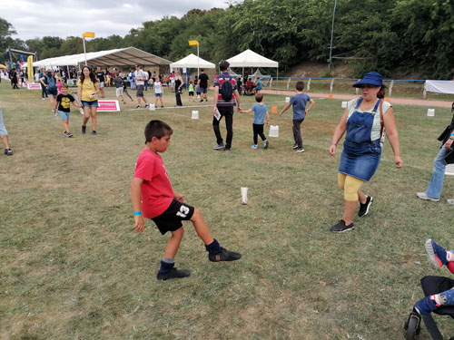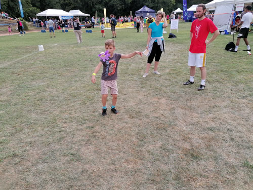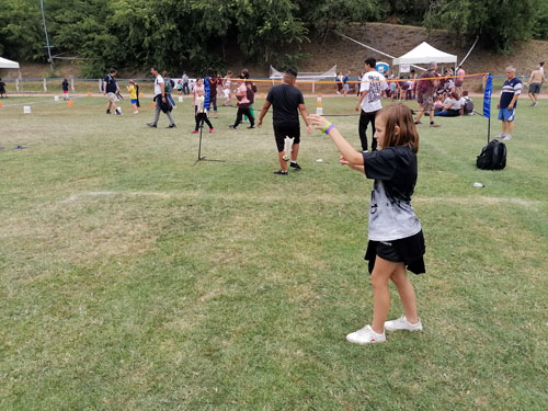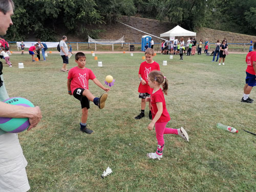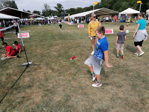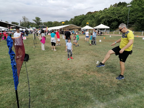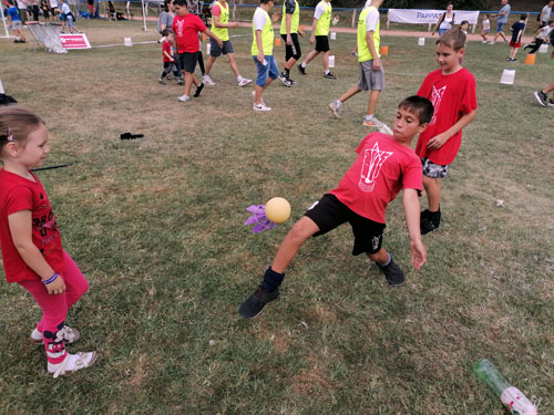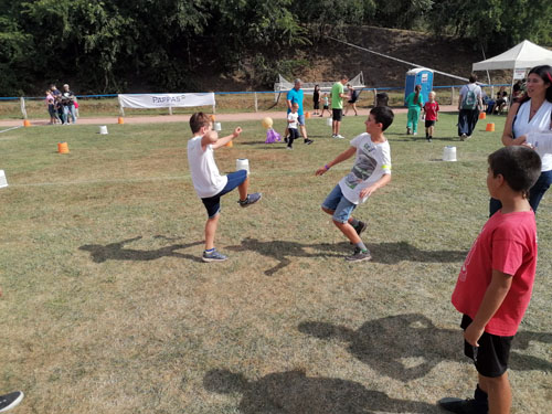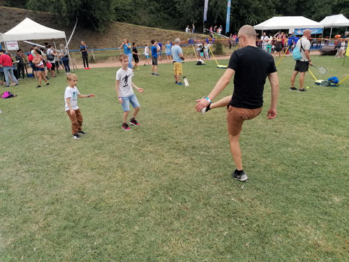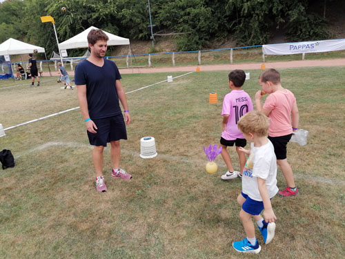 csoport érkezésénél 20-30 gyermek próbálhatta ki egyszerre a lábtoll-labdázást.