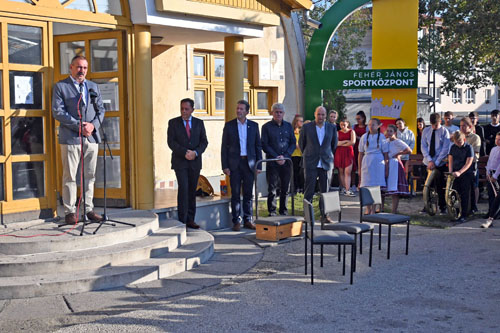 Fehér János munkásságát, és beszélt a sportcsarnok településen betöltött fontos