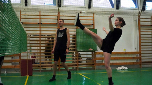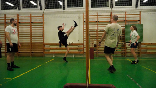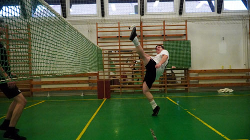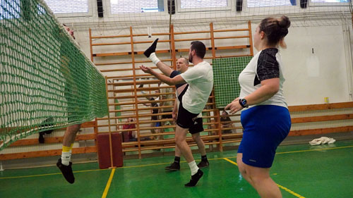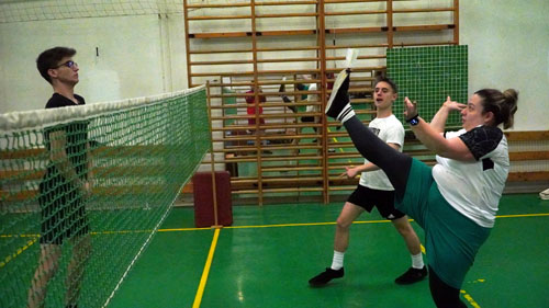 cserszegi tanulókkal a lábtoll-labdázást.
