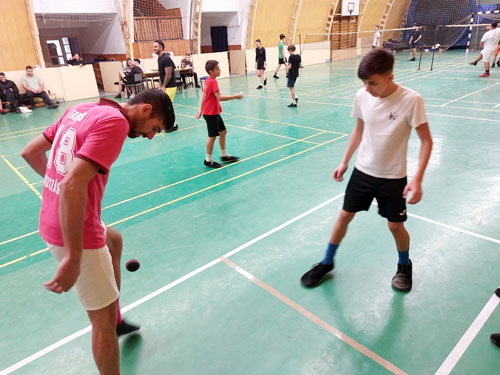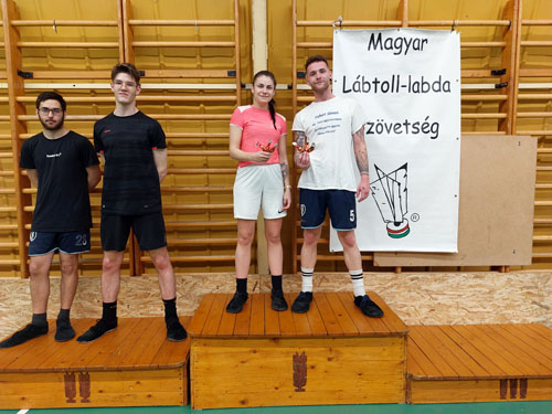 A programban sorsolásos páros következett, ahol 32 lábtoll-labdázó