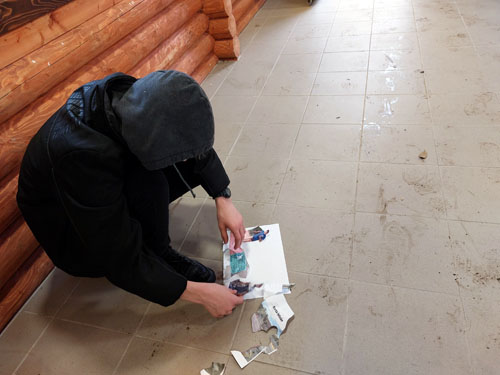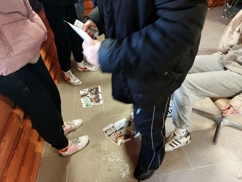 képdarabokat összeragasztva Újszász sportéletét és a lengyel-magyar barátságot