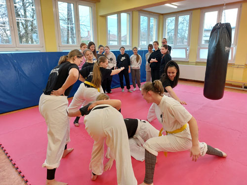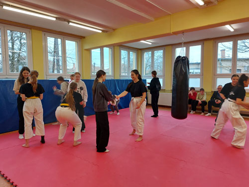 több, mint tíz tanítványával együtt tartott önvédelmi és karate edzést. A