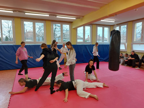 Szolnoki SZC Rózsa Imre Technikum önvédelmi csoportjának egy része. A Ki mit