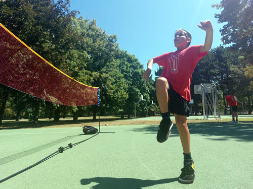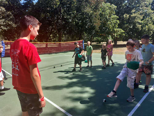 lábtoll-labda bemutatót tartsunk a táborozó gyerekeknek. Július 30-án kora