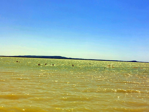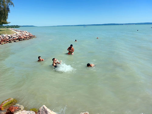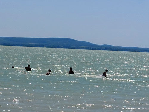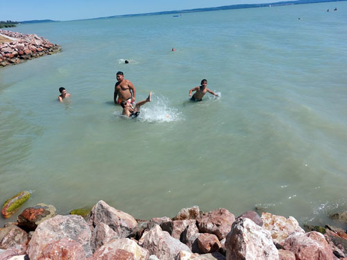vízhõmérsékletû Balatonban a ránk váró négy és fél órás hazaút elõtt. Kalandos