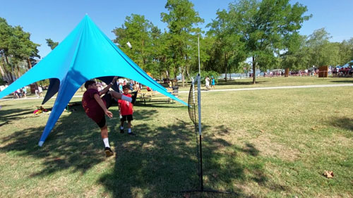 A napsütéses nyári idõ és a Balaton-parti ideiglenes lábtoll-labda