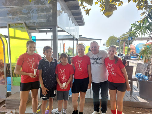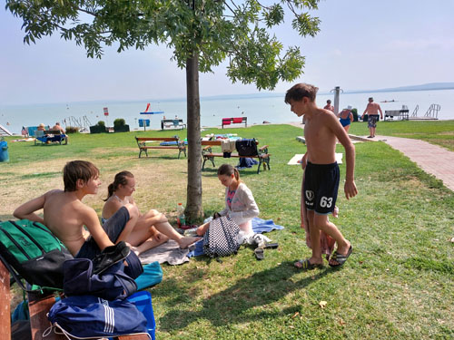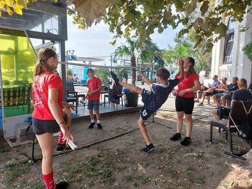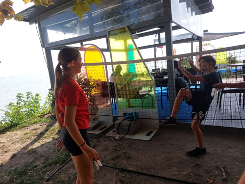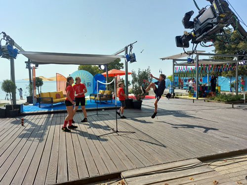 révfülöpi mólón felállított lábtoll-labda pályán rúgták a labdát, miközben