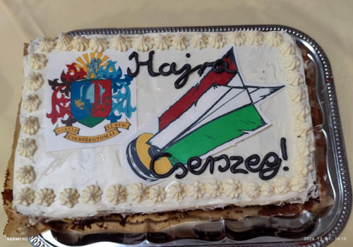 címerével, Hajrá Cserszeg! felirattal és 24-es számot formázó gyertyával. A